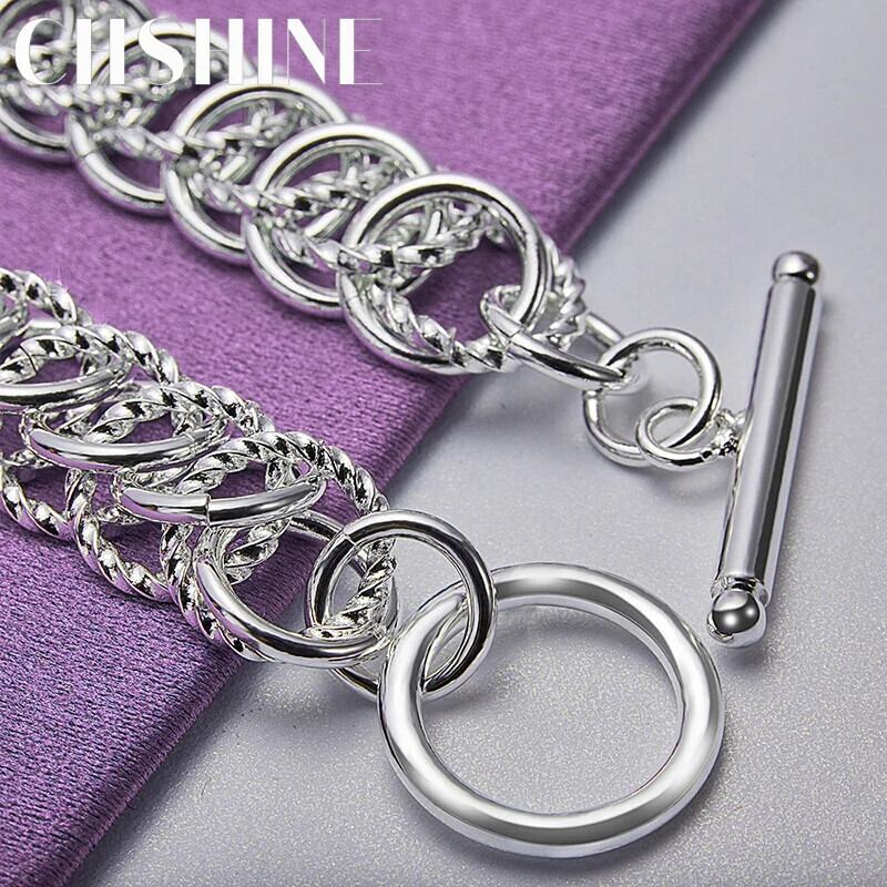 送料無料 CHSHINE 925 スターリングシルバーマルチリングチェーンブレスレット女性のウェディングパーティーチャームジュエリー 指輪 銀 AE0077766669688947348