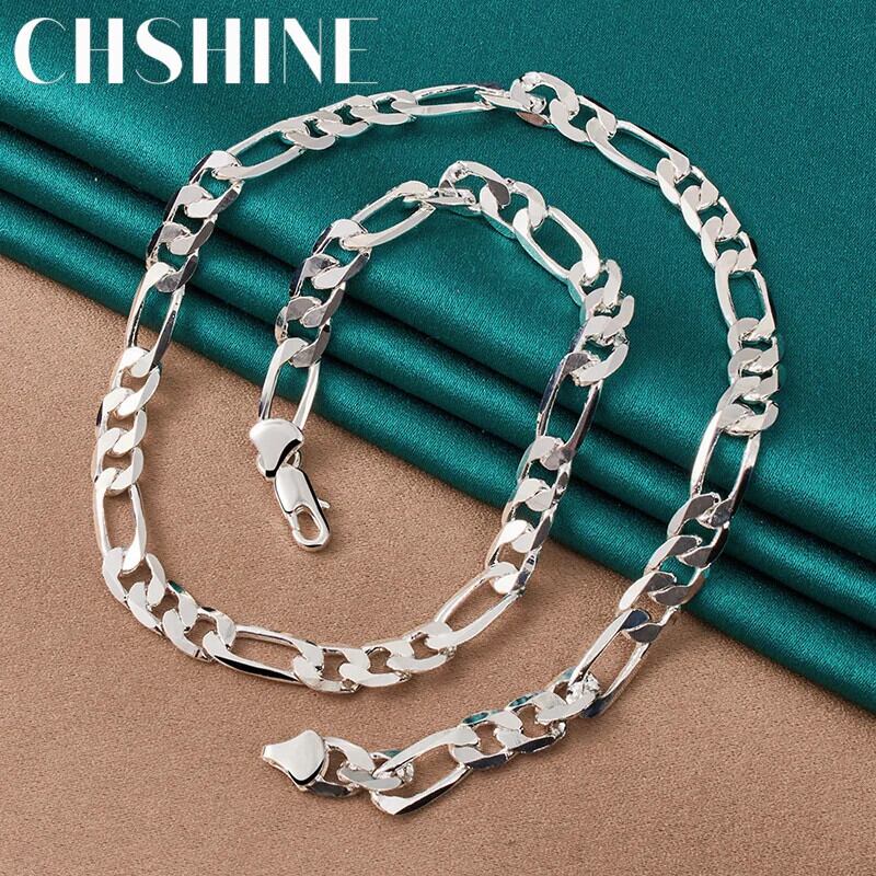送料無料 CHSHINE 925 スターリングシルバー 8 ミリメートルサイドチェーン 16/18/20/22/24 インチネックレス男性女性のウェディングパーティージュエリー レース 銀 AE0077766661803459741