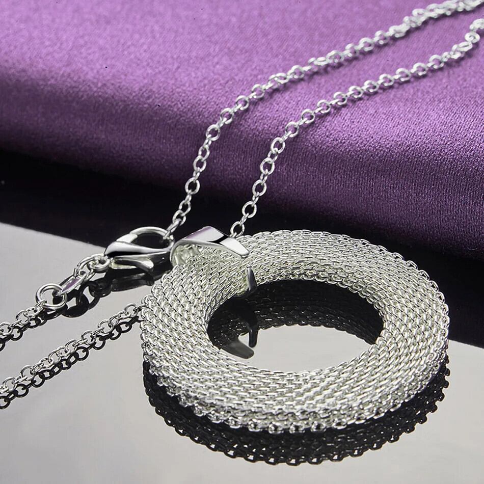 送料無料 CHSHINE 925 スターリングシルバー織りラウンドチャームペンダントネックレスリング女性愛好家の婚約絶妙なジュエリーセット レース 指輪 銀 AE0077766673313596991