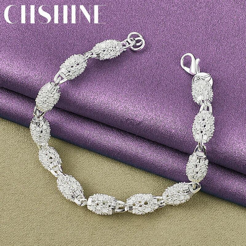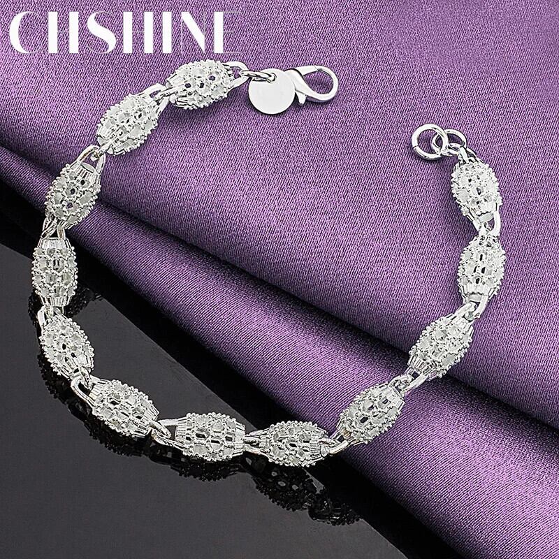 送料無料 CHSHINE 925 スターリングシルバー中空ラウンドチェーンブレスレット女性のウェディングパーティーチャームジュエリー 銀 AE0077766655548012045