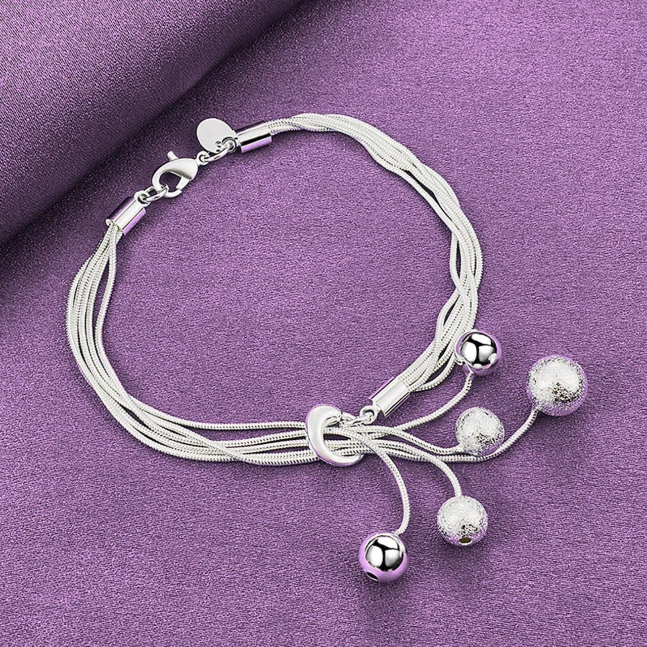 送料無料 CHSHINE 925 スターリングシルバー滑らかなマットビーズブレスレットスネークチェーン女性のウェディングパーティーチャームジュエリー 銀 AE0077766622362220094