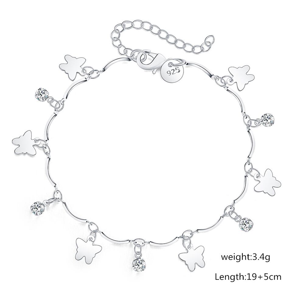 送料無料 チャーム 925 スターリングシルバーブレスレット女性ジルコン蝶チェーンエレガントなウェディングパーティークリスマスファインジュエリー 銀 AE0077766624749931268