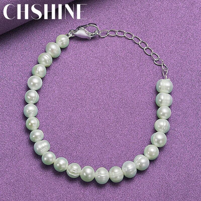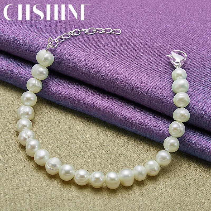 送料無料 CHSHINE 925 スターリングシルバーパールチェーンブレスレット女性のウェディングパーティーチャームジュエリー 真珠 銀 AE0077766675186998635