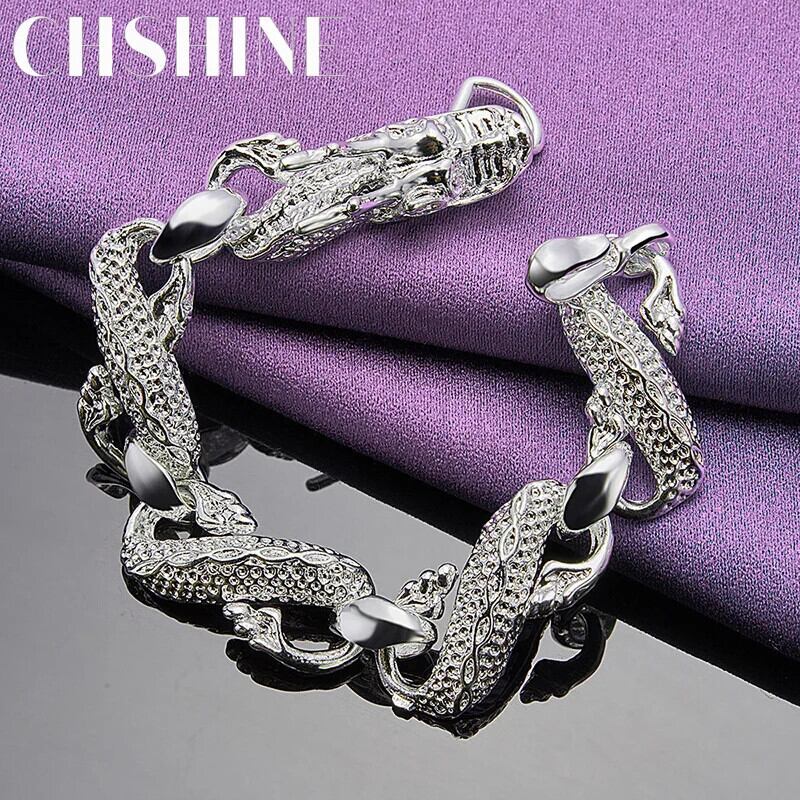 送料無料 CHSHINE 925 スターリングシルバードラゴン蛇口チェーンブレスレット女性のウェディングパーティーチャームジュエリー 銀 AE0077766638098433176