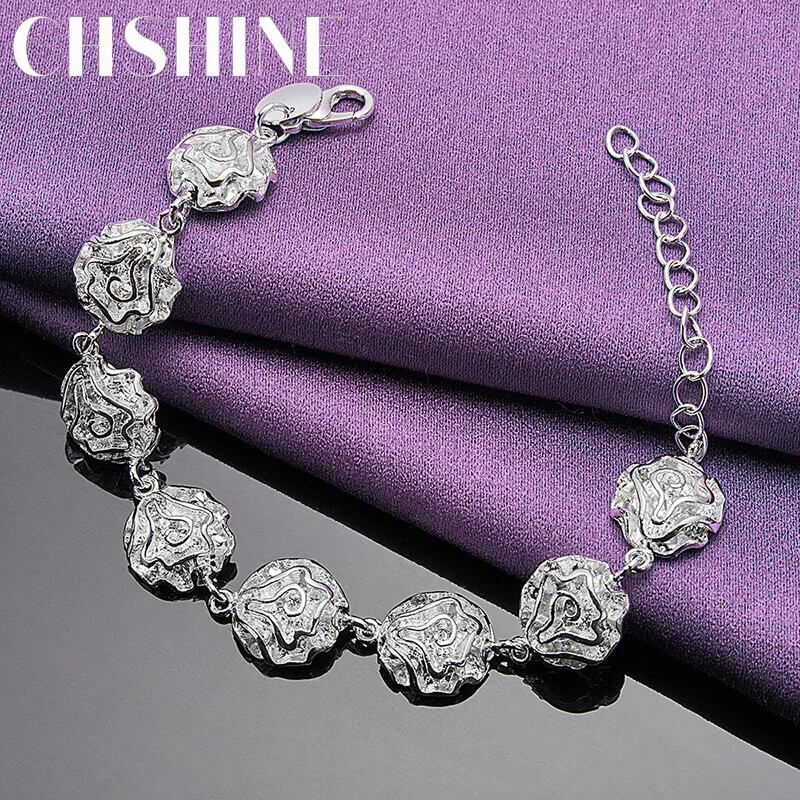 送料無料 CHSHINE 925 スターリングシルバーローズチェーンブレスレットチャームウェディングパーティー女性ジュエリーギフト 銀 AE0077766684142339314