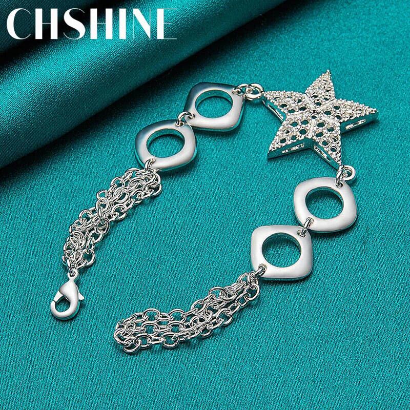送料無料 CHSHINE 925 スターリングシルバースター 4 リングブレスレット女性のウェディングパーティーチャームジュエリー 指輪 銀 AE0077766615659991069