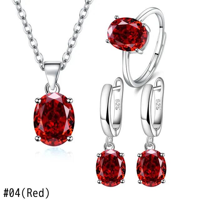 送料無料 925 スターリングシルバージュエリーセット女性楕円ジルコンリングネックレスイヤリング高級アクセサリーオファー レース 指輪 銀 AE0077766623518005411