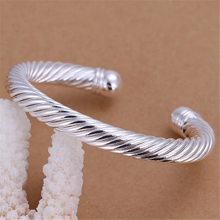 送料無料 925 スターリングシルバーワイド麻ロープカフバングルブレスレット女性の高級婚約チャームジュエリークリスマス Chshine 銀 AE0077766628567284466