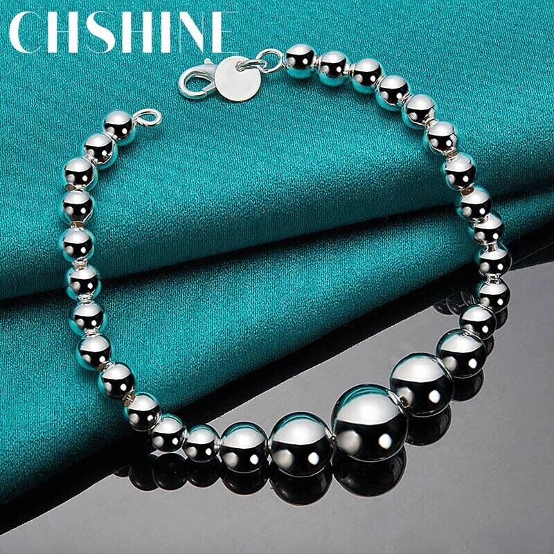 送料無料 CHSHINE 925 スターリングシルバー 6/8/10/12 ミリメートルスムーズなビーズブレスレット女性の結婚式のファインジュエリー 銀 AE007776663058995452