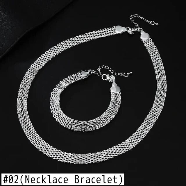 送料無料 ホット 925 スターリングシルバー創造性ネットチェーンブレスレットネックレス女性ファッションデザイナーパーティーウェディングジュエリーセット レース 銀 AE0077766668302768108