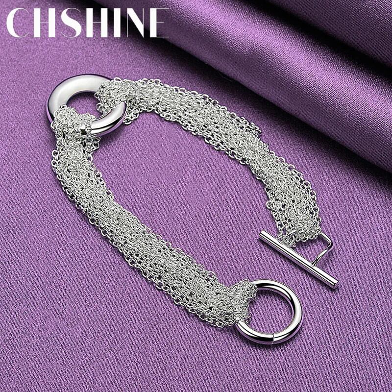送料無料 CHSHINE 925 スターリングシルバー マルチチェーン サークル ブレスレット 女性 ウェディング パーティー チャーム ジュエリー 20 センチメートル 8 インチ 銀 AE0077766663238636460