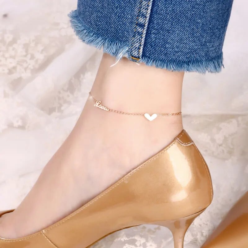 送料無料 2023 ラブレターハート型チタン鋼アンクレット女性 2023 ジュエリーは色あせませんビーチフットレッグジュエリー AE1218878788779502877001