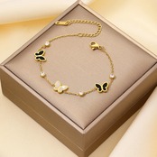 送料無料 316L ステンレス鋼調節可能なブラックホワイトシェル蝶チャームブレスレット女性ゴールドカラー手首ジュエリーパーティーギフト アジャスタブル AE1218878788756519352099