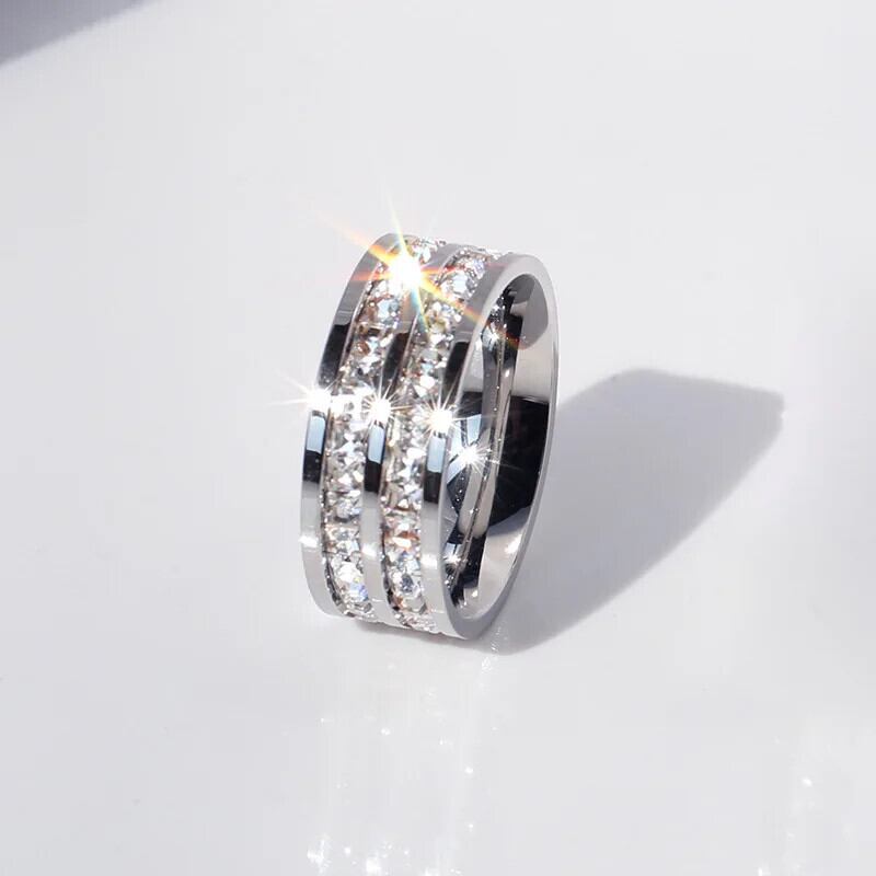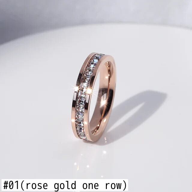 送料無料 2023 ローズゴールドカラー複列スクエアジルコンステンレス鋼リング女性ロマンチックな Engageme ウェディングパーティージュエリー 指輪 スクウェア AE1218878788716683789244
