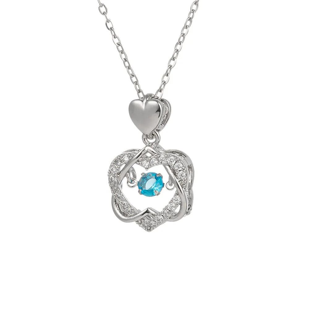 送料無料 高級ブルークリスタルオーシャンハートペンダントネックレス女性ステンレス鋼シルバーネックチェーンウェディングジュエリー レース 銀 AE1218878788786899353676