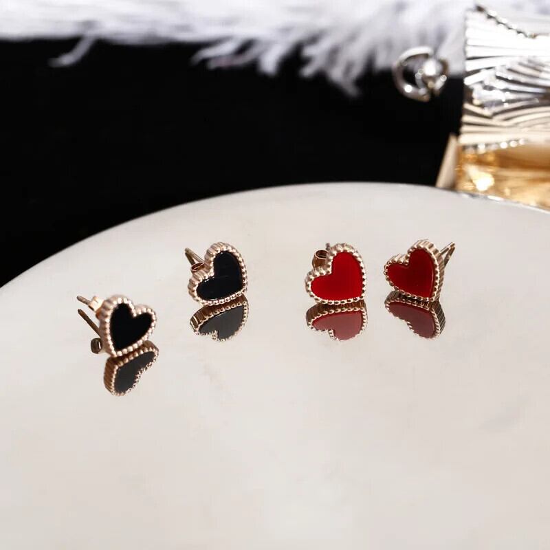 送料無料 シンプルな甘い赤黒ハートスタッドピアス女性の気質多用途シェルステンレス鋼の耳のジュエリー レッド ブラック イヤリング 大人ガーリー スウィート キュート カジュアル リング 指輪 AE1218878788761562591426
