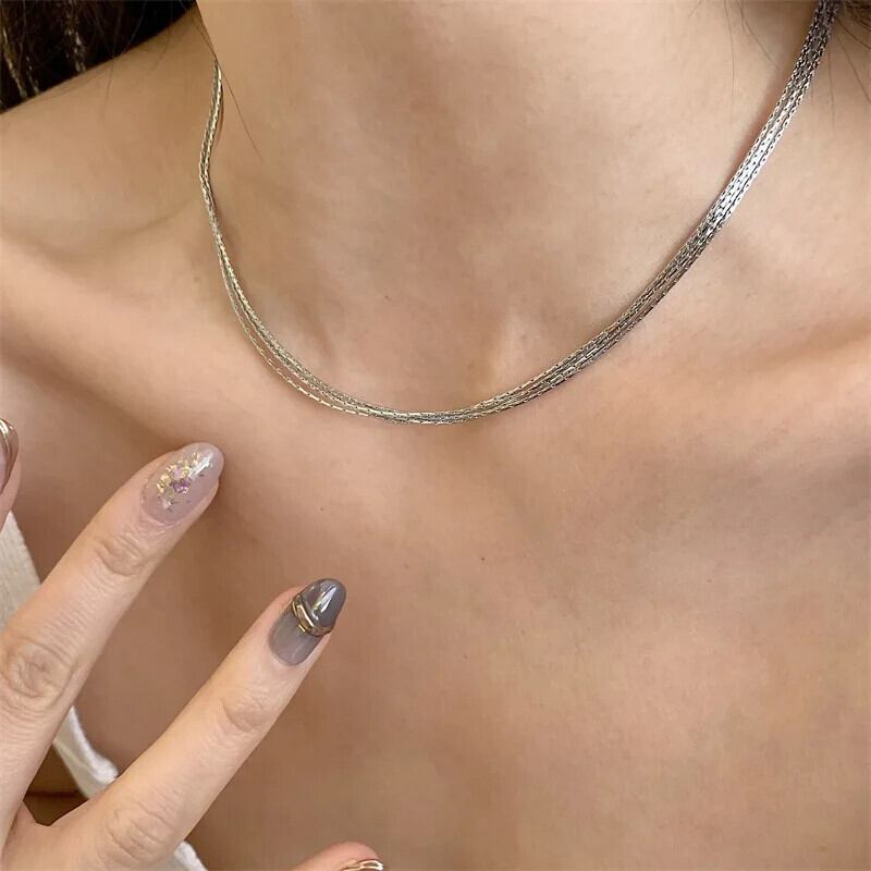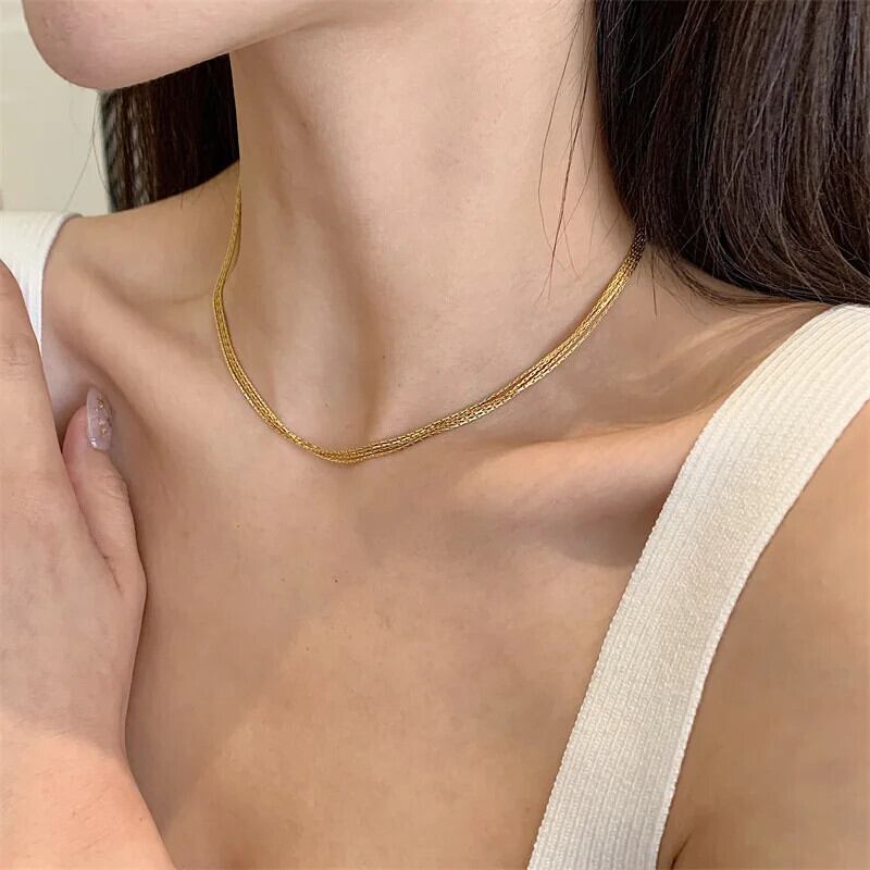 送料無料 316l ステンレス鋼多層編組ロープ Tel ネックレステクスチャスタック鎖骨チェーンネックレスジュエリー 18K ゴールド レース AE1218878788722870280438