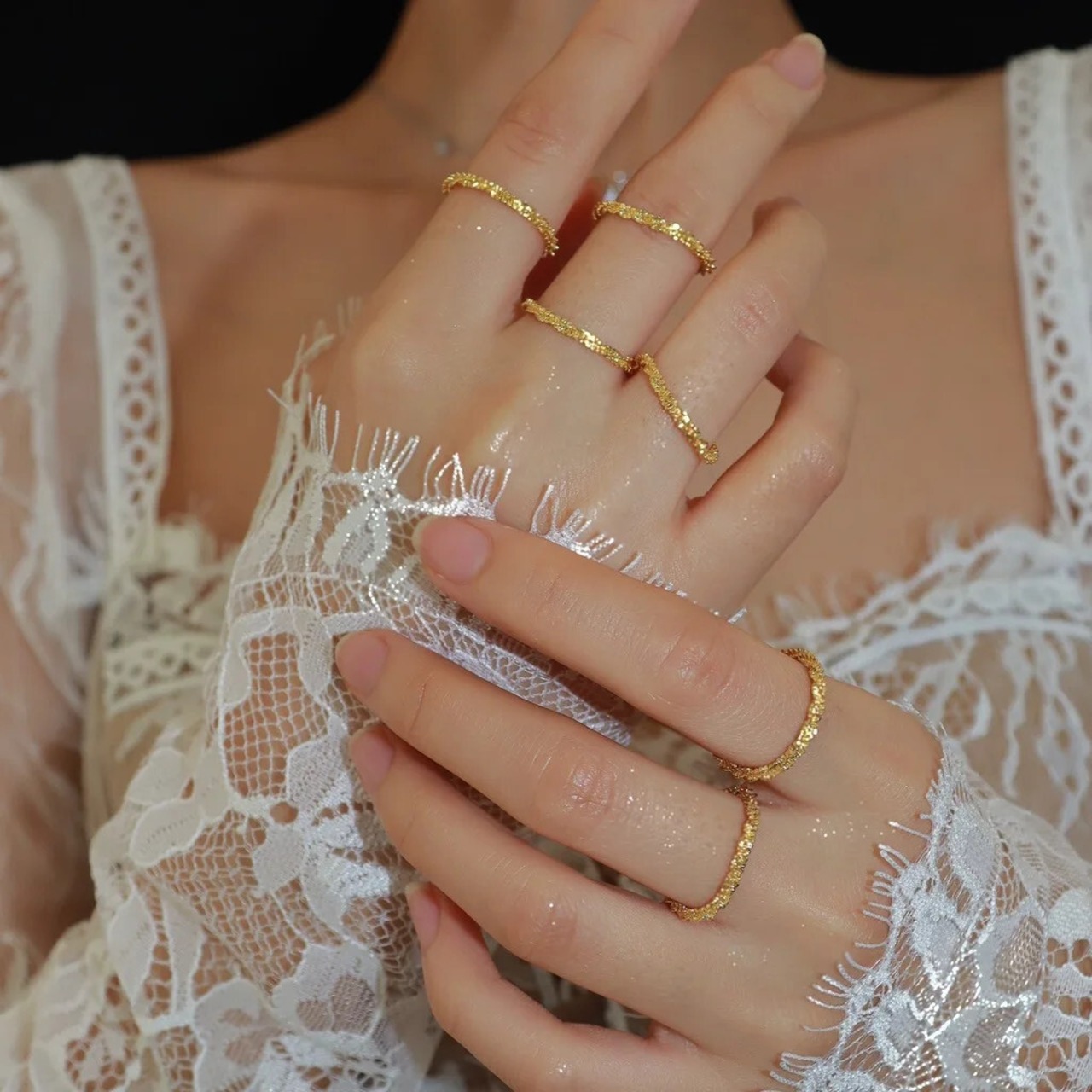 送料無料 ステンレス鋼の高級ポップスパークリングリング女性ゴールドスタッキングリングジュエリーウェディングパーティー誕生日ギフトアクセサリー 指輪 AE1218878788778785006584