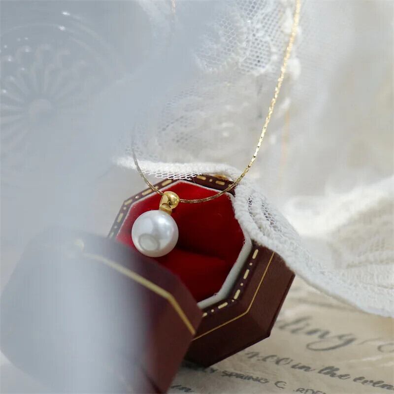 送料無料 ステンレス鋼シンプルなラウンドパールゴールドメッキネックレス ese ウェディングジュエリー女性の鎖骨ネックレス レース 真珠 AE121887878871225085405