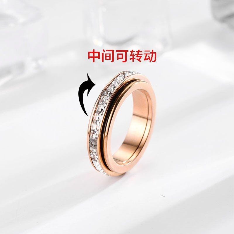 送料無料 高級ローズゴールドカラー回転可能なスクエアジルコンステンレス鋼リング女性ロマンチックな婚約ウェディングパーティージュエリー 指輪 スクウェア AE1218878788727696636369
