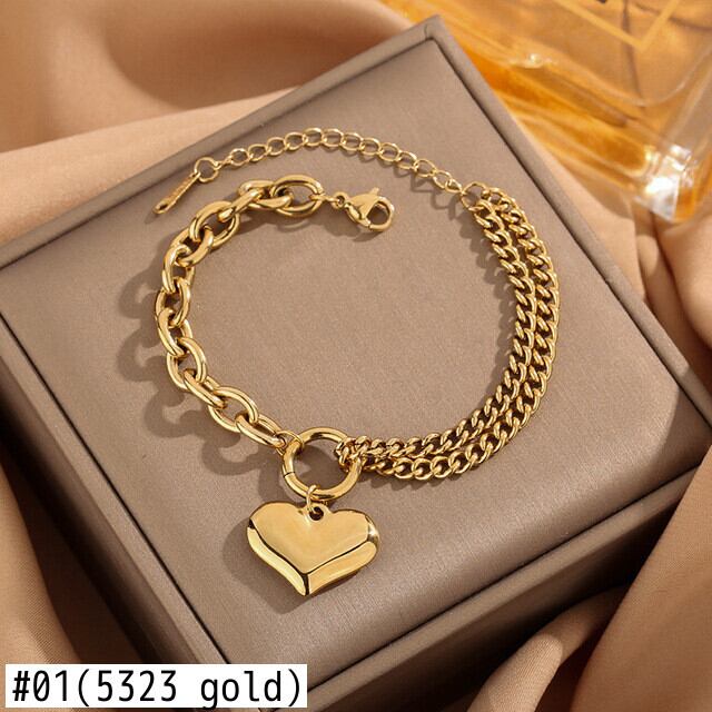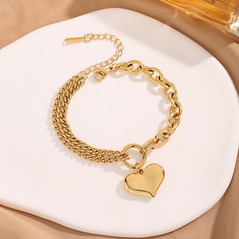 送料無料 ヴィンテージゴールドメッキステンレス鋼ラブハートスプライシングチェーンブレスレット女性ボヘミアン厚いブレスレット女の子手首ジュエリー ビンテージ AE1218878788725137484497