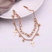 送料無料 2023 ステンレス鋼クロス多層ブレスレットチャームゴールドカラーリストブレスレットジュエリー брелок マルチレイヤー AE1218878788796036507813