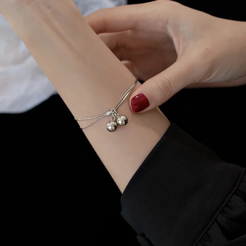 送料無料 シンプルな二重層スネークチェーン小さなベルペンダントステンレス鋼ブレスレット女性の気質手首のジュエリー AE1218878788756898005988
