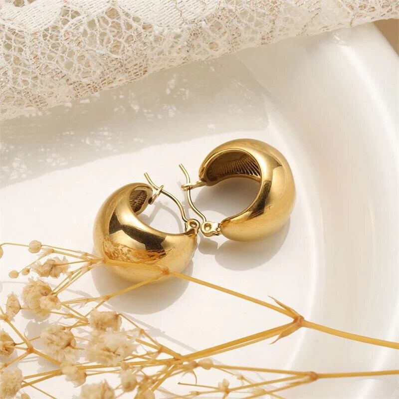送料無料 ステンレス鋼分厚いフープイヤリング女性ヴィンテージゴールドカラージオメトリウォーターレットイヤリングパーティージュエリーギフト 指輪 ビンテージ AE1218878788712097510945