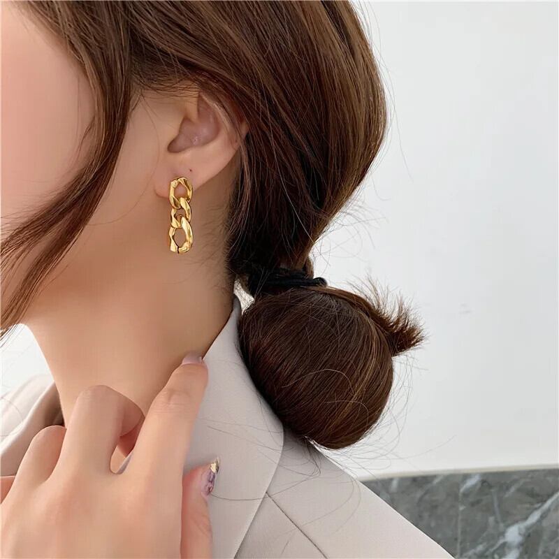 送料無料 2023 ステンレス鋼のスタッドピアス女性キューバリンクチェーンゴールドメッキブラブライヤリングロックパンクジュエリー 指輪 AE1218878788720759076468