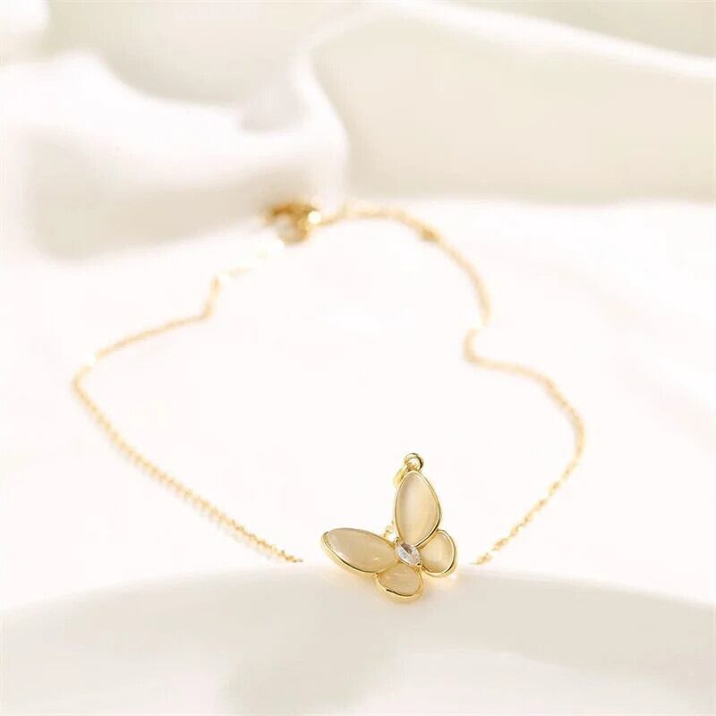 送料無料 2023 オパール蝶ペンダントステンレス鋼のネックレス女性の気質ライト高級ネックチェーンジュエリー レース 蛋白石 AE1218878788715152609619