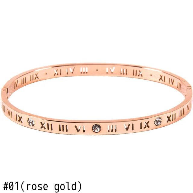 送料無料 2023 ローマ数字チャームバングル女性男性ローズゴールドカラーステンレス鋼ジュエリー誕生日ギフト色褪せない AE1218878788771655283774