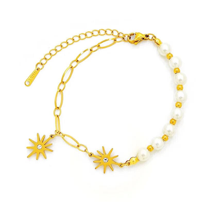 送料無料 チャーム 316L ステンレス鋼ゴールドカラーパール太陽スプライスブレスレット女性腕輪非退色ジュエリーギフトアクセサリー 真珠 AE1218878788763656625824