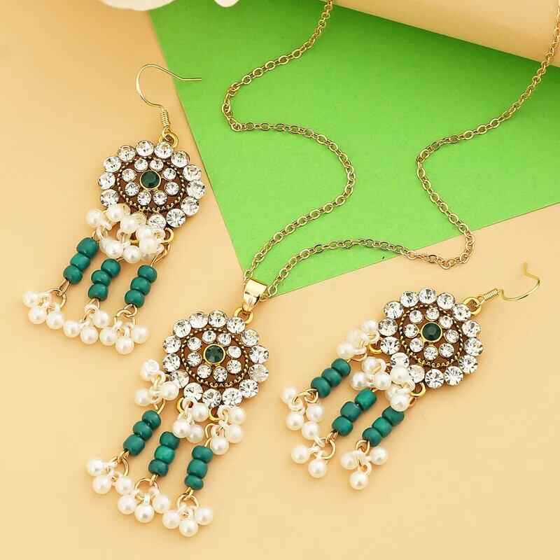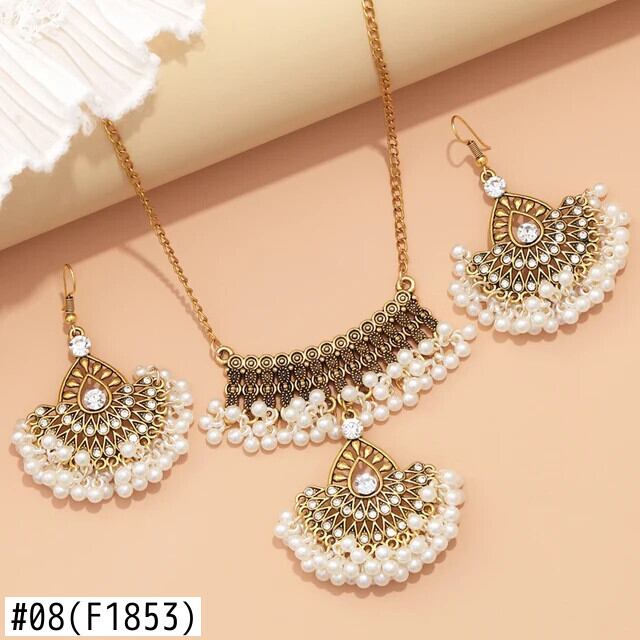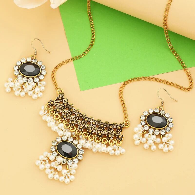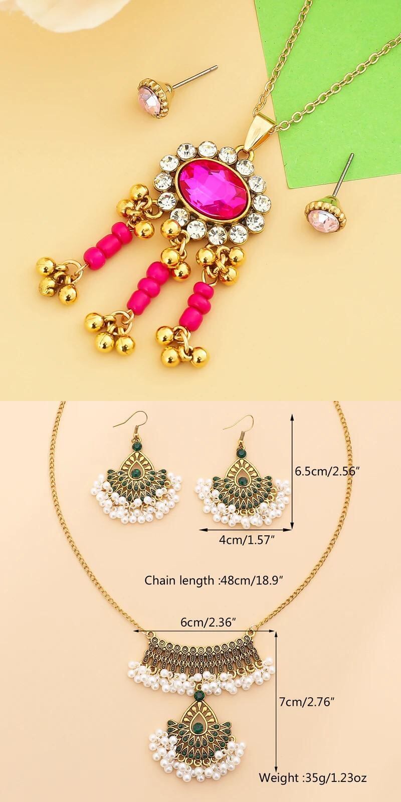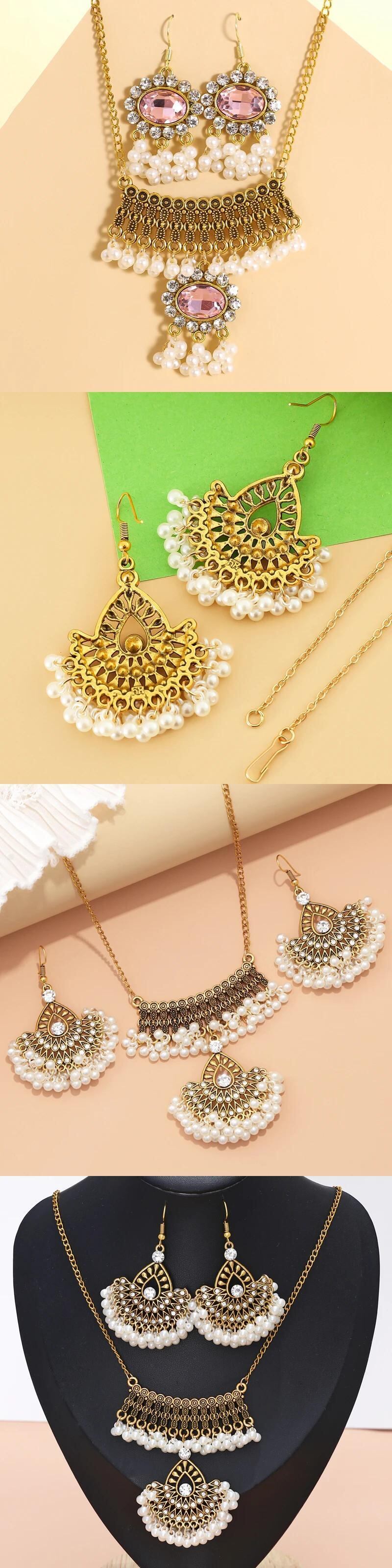 送料無料 ZOSHI エスニックインディアンウェディングジュエリーセット女性レトロステートメントビッグペンダントネックレスイヤリングセットゴールドメッキジュエリーセット レース 指輪 AE1556555592181006800