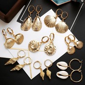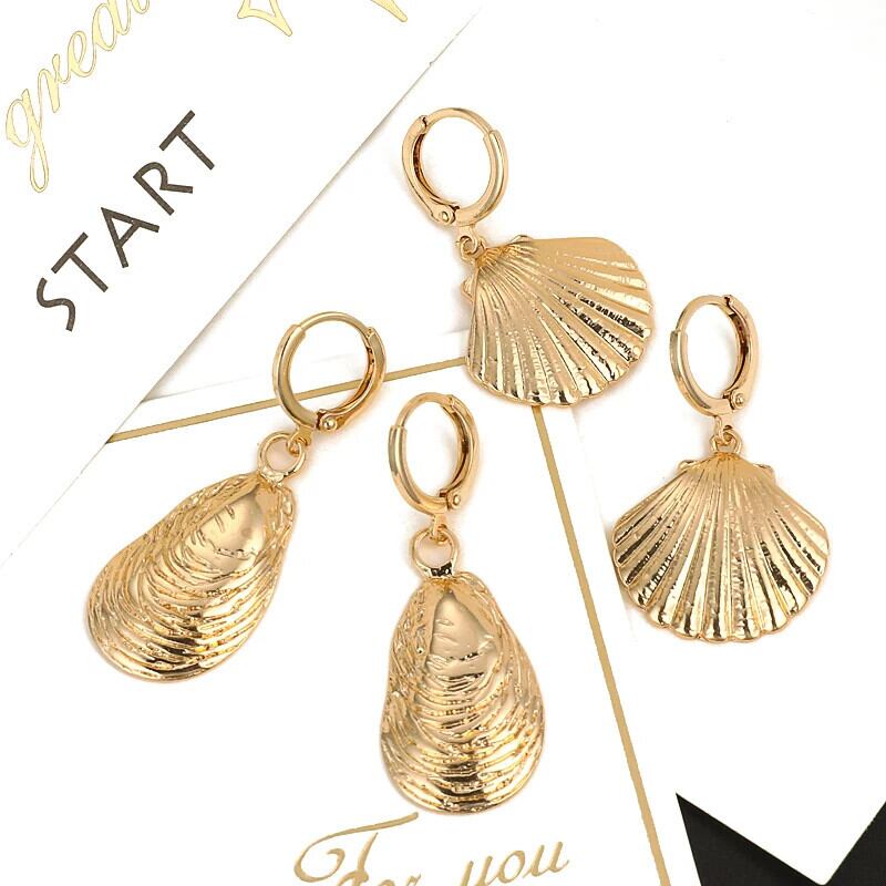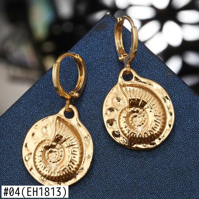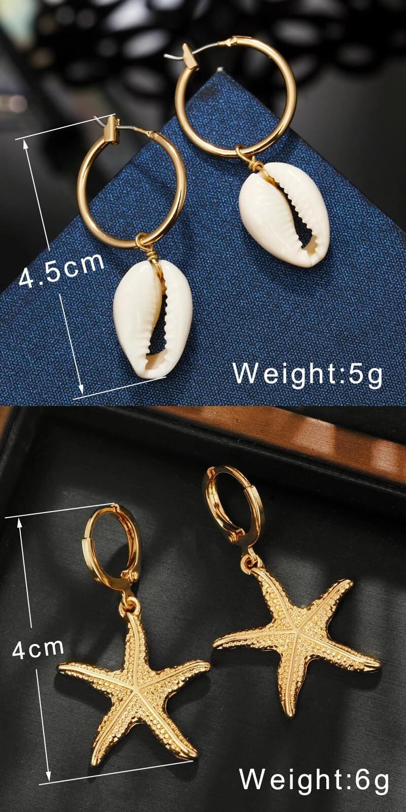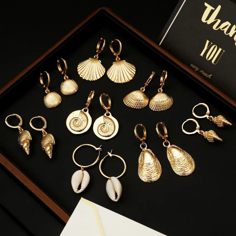 送料無料 ZOSHI 女性ボヘミアンゴールドメッキヒトデ巻貝ビッグサークルイヤリングシェルダングルイヤリング 指輪 AE1556555596903249014