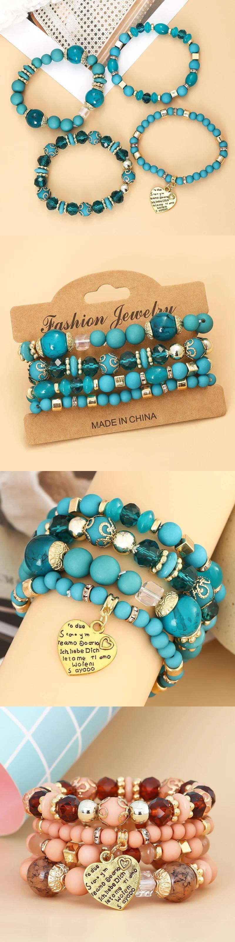 送料無料 ZOSHI 3 個蝶ペンダントチャームビーズブレスレットセット女性ボヘミアン Tel リストバンドブレスレットバングル Pulseras AE1556555573037937758