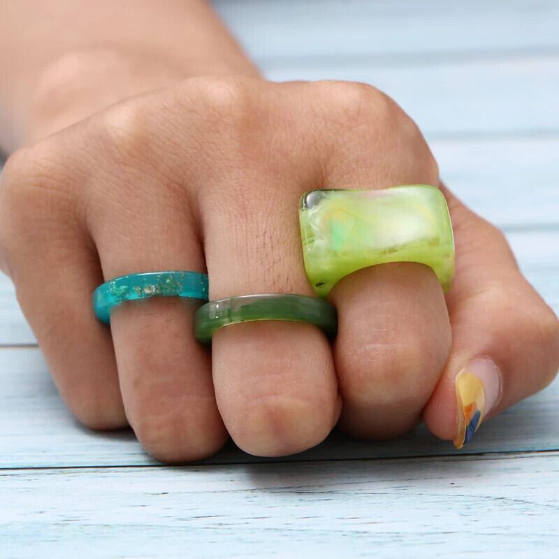 送料無料 ZOSHI 2021 透明樹脂アクリルリングセット女性カラフルな幾何学的な正方形ラウンドリング指ジュエリー 指輪 スクウェア AE1556555532096930262