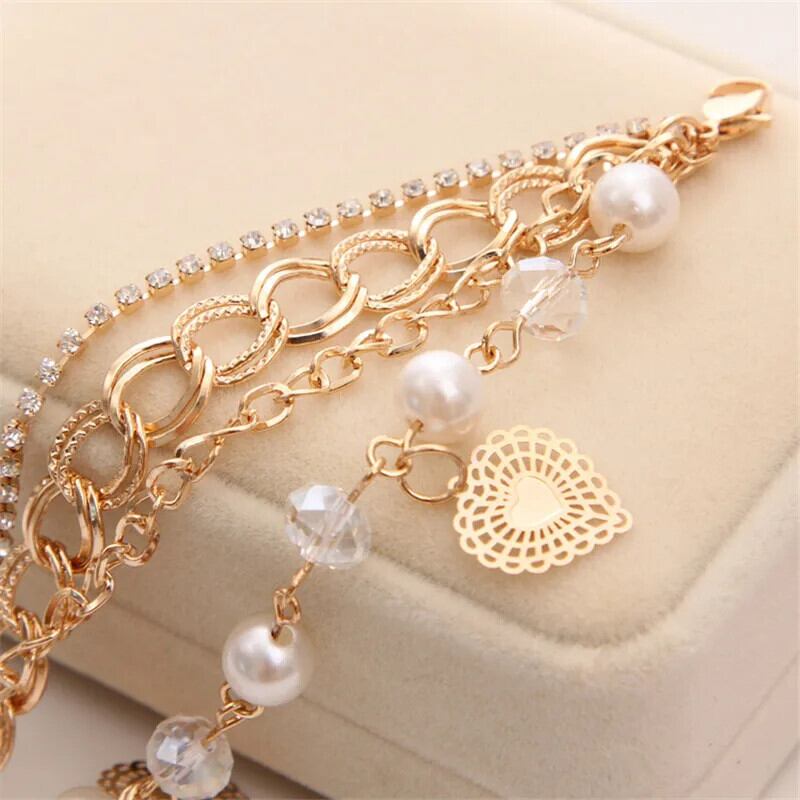 送料無料 ZOSHI 模擬パールビーズブレスレット女性多層ゴールドカラーチェーンブレスレット腕輪ラブハートチャームブレスレット 真珠 人工 AE1556555551058804518