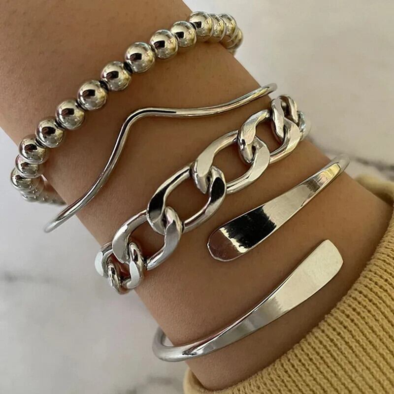 送料無料 ZOSHI ゴールドカラーアローサークルブレスレットセット女性 4 個チェーンラインストーンカフバングルパーティージュエリートレンディなブレスレットギフト AE1556555570394334708