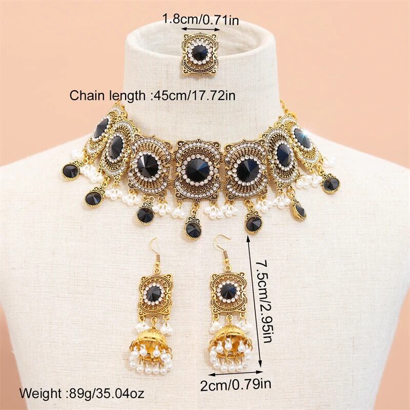 送料無料 ZOSHI レトロインディアンブライダルジュエリーセット女性エスニックゴールドメッキネックレスイヤリングリングセットウェディングパーティージュエリーセット レース 指輪 AE1556555582325175428