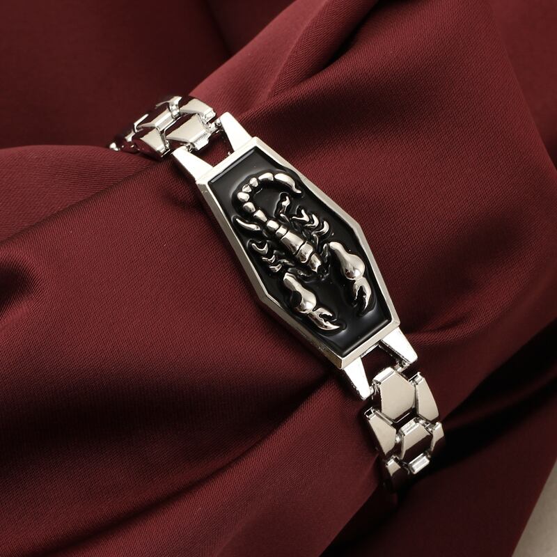 送料無料 ZOSHI シルバーカラーのメタルブレスレット男性パンクサソリ鋼ブレスレット & バングルトレンディなリストバンド Pulsera 銀 AE1556555544413537356