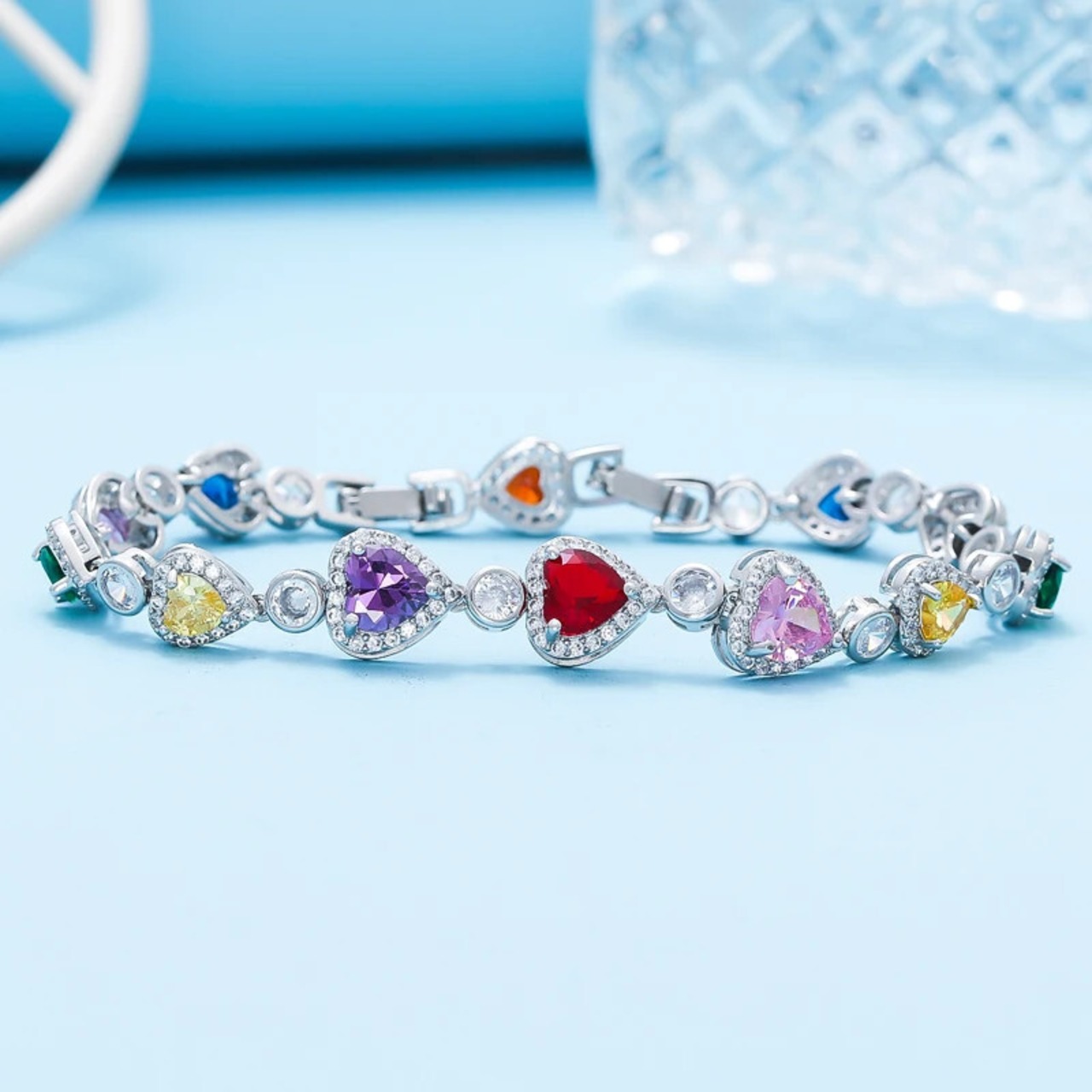 送料無料 ZOSHI ブルージルコンクリスタルブレスレット女性シルバーメッキラブハートチャームブレスレットパーティージュエリー優雅なブレスレット 銀 AE155655552532949862