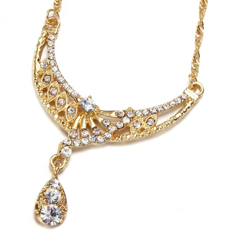 送料無料 Clic ブライダルジュエリーセット女性のドレスアクセサリーキュービックネックレスイヤリングセットゴールドカラーのウェディングドレス レース 指輪 AE1556555528583919975