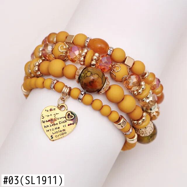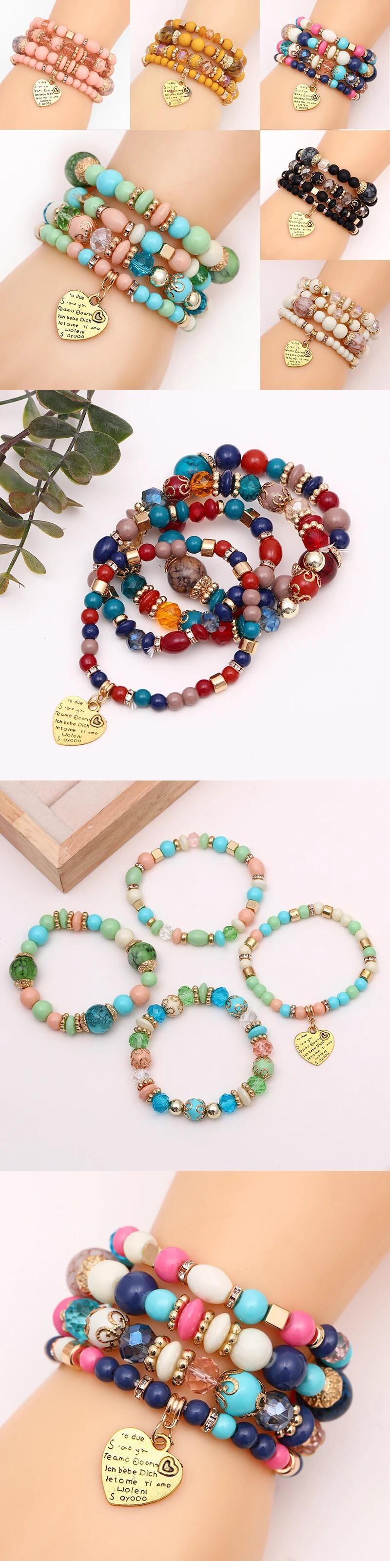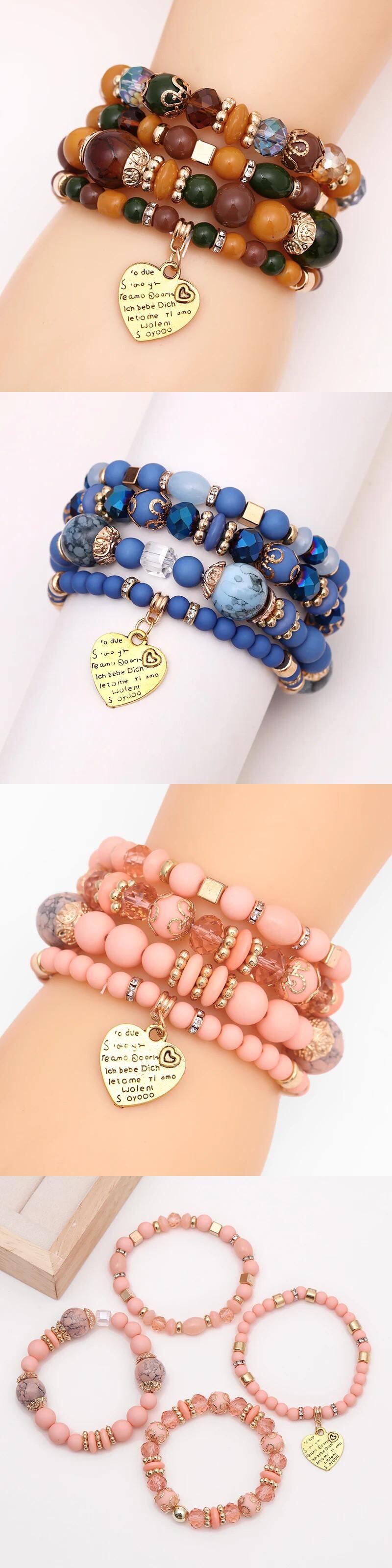 送料無料 ZOSHI 4 ピース/セットストーンビーズチャームブレスレット女性マルチカラーアクリルビーズ手作りジュエリーラブハートブレスレット AE1556555514135721309