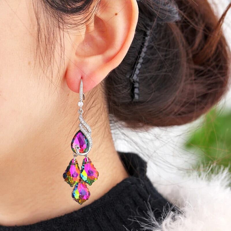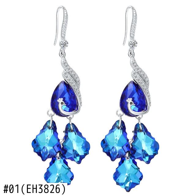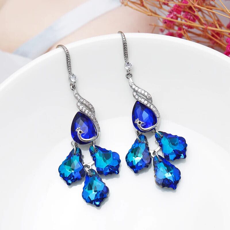 送料無料 ZOSHI 高級孔雀クリスタルブラブライヤリング女性シルバーメッキラインストーンウェディングパーティージュエリーイヤリング 指輪 銀 AE1556555544829240061