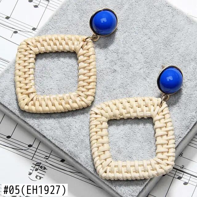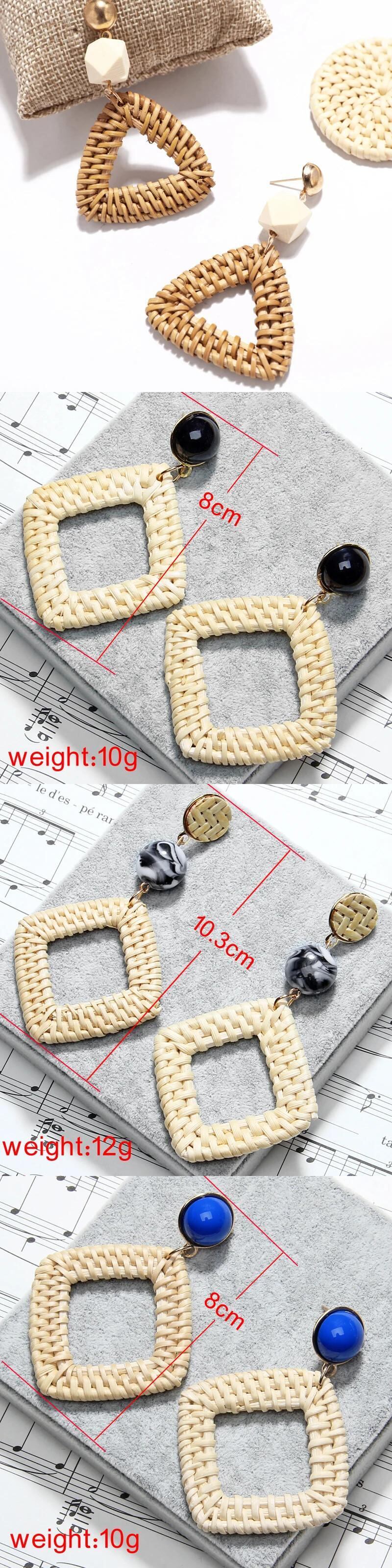 送料無料 手作り不規則なアクリルストーン木製ビッグ中空アウトラウンドサークル籐わら織りイヤリング女性ガール 指輪 AE1556555581895919305