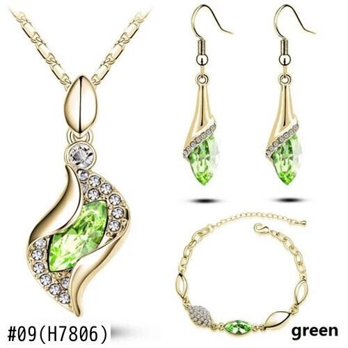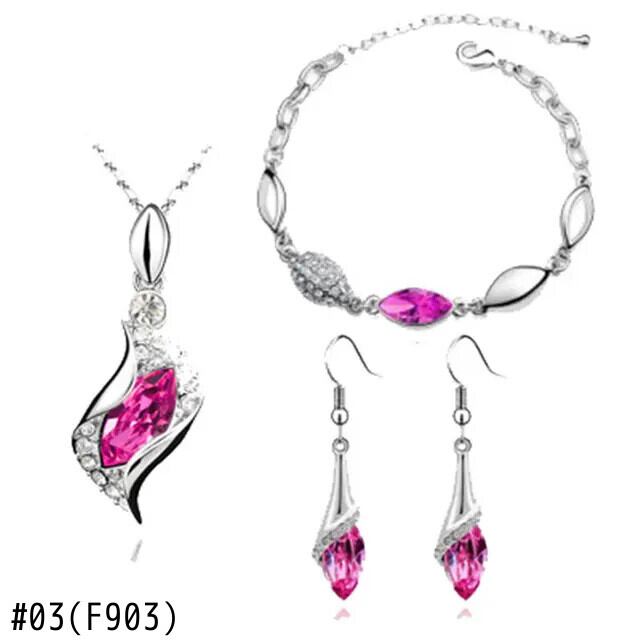 送料無料 3 個のブライダルジュエリーセットネックレスイヤリングブレスレット女性婚約水馬の目の形オーストリアのクリスタルジュエリー レース 指輪 AE1556555552466305681