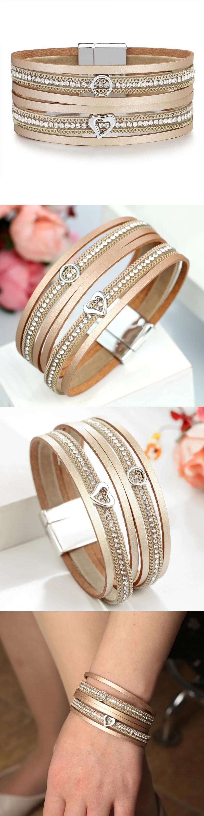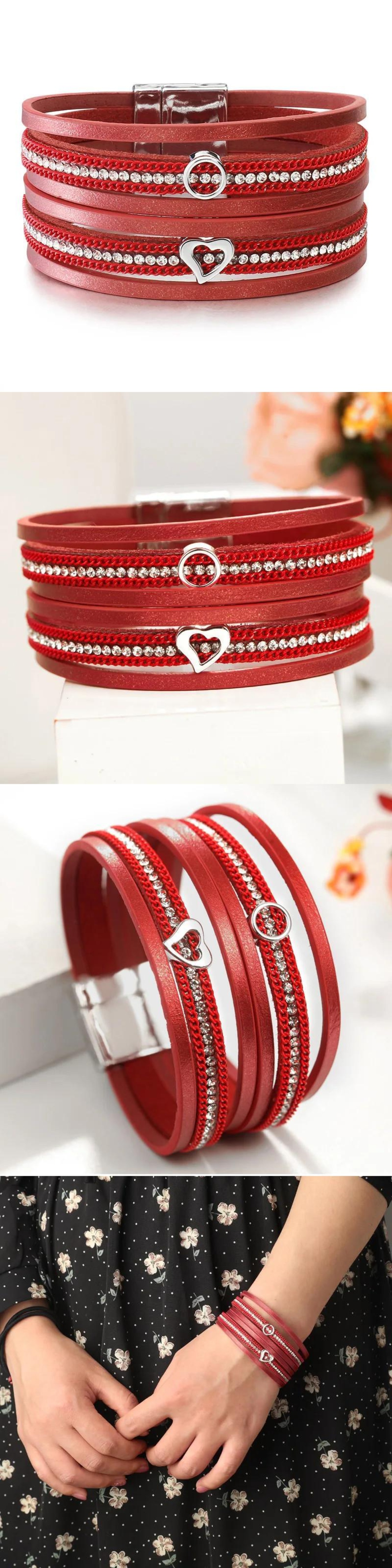 送料無料 ZOSHI 編組レザーブレスレット女性ハートブリンブリンクリスタルセラミックチャーム多層ブレスレット & バングルジュエリー マルチレイヤー AE1556555537260463002