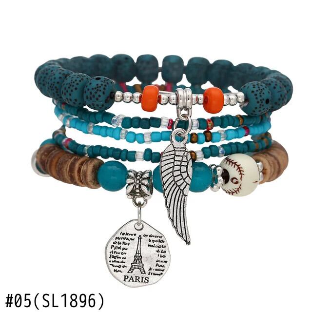 送料無料 ZOSHI 女性ボヘミアン多層弾性ブレスレットセット腕輪シルバーカラーコインパールビーズチャームラップブレスレットジュエリー エラスティック 伸縮 マルチレイヤー 真珠 銀 AE1556555572404216723