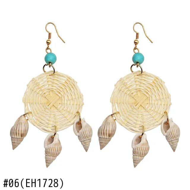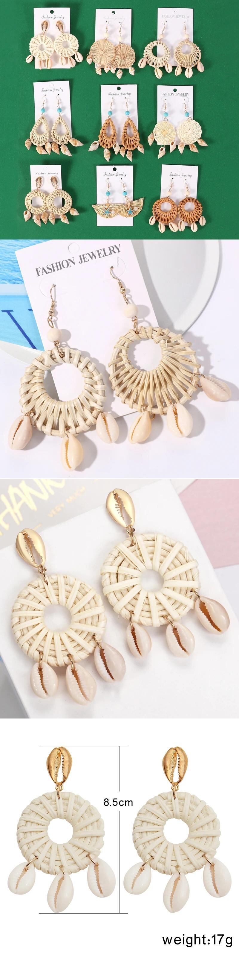 送料無料 ボヘミアンスタイルラウンドわら編みブラブライヤリング女性幾何学的な誇張ラウンドペンダントステートメントジュエリー 指輪 AE1556555513001414968