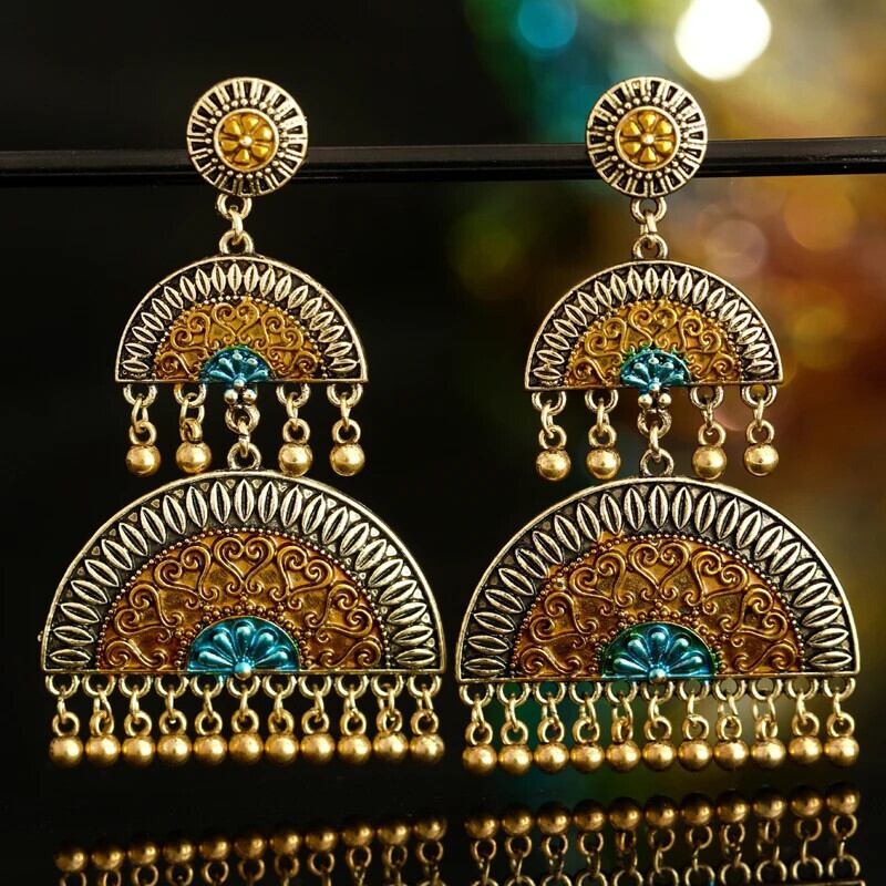 送料無料 ZOSHI ヴィンテージイヤリング女性アンティークゴールドカラーペンダントイヤリングインドの結婚式のブライダルジュエリーステートメントイヤリング 指輪 ビンテージ AE1556555587357187634